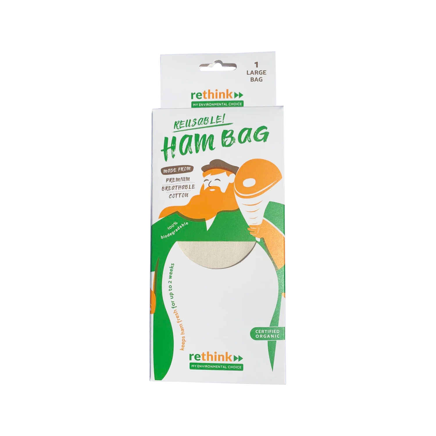 This little piggy went to the market, and this little piggy stayed fresh for two weeks because it was stored in our Ham Bag! Most people don’t know it, but pork and ham need special care to keep from drying out in the fridge. These Ham Bags are specially designed to lock in moisture, and they have handy care instructions printed right on the bag!